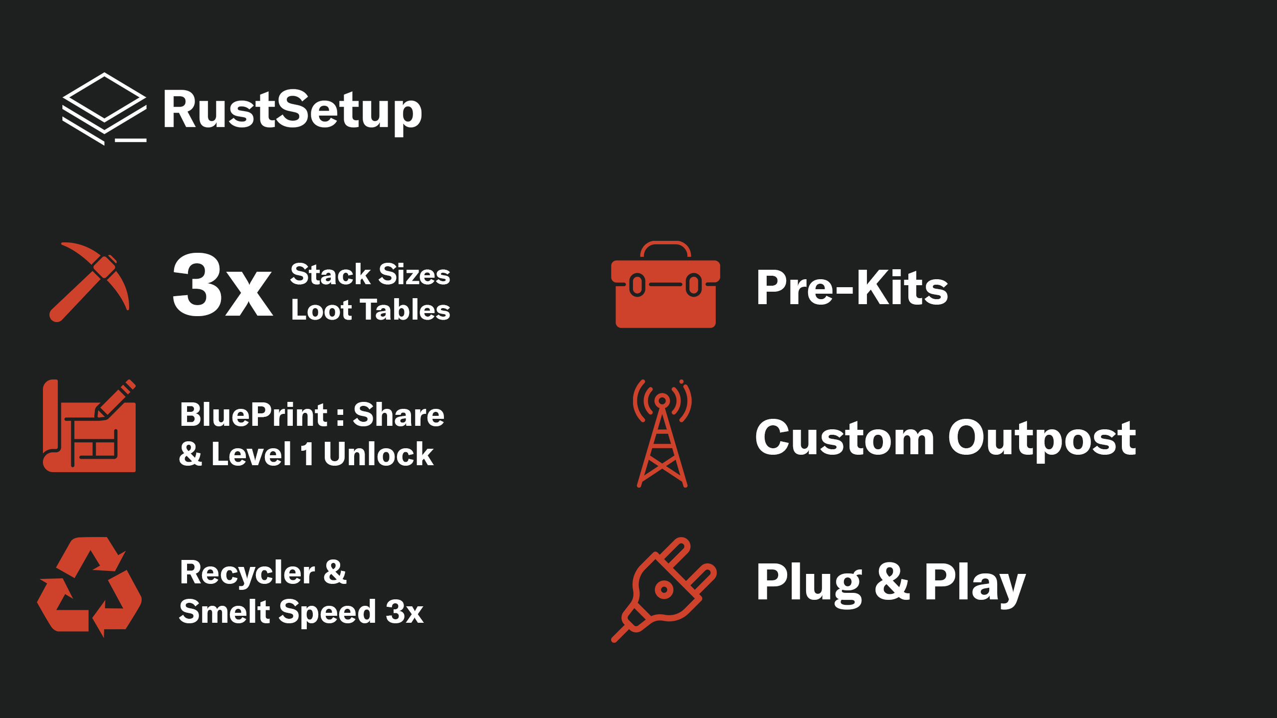 Documentation detailing the installation process is provided. It also includes explanations of the plugins as well as the steps to take if you wish to make changes. Perfect for your first Rust server.